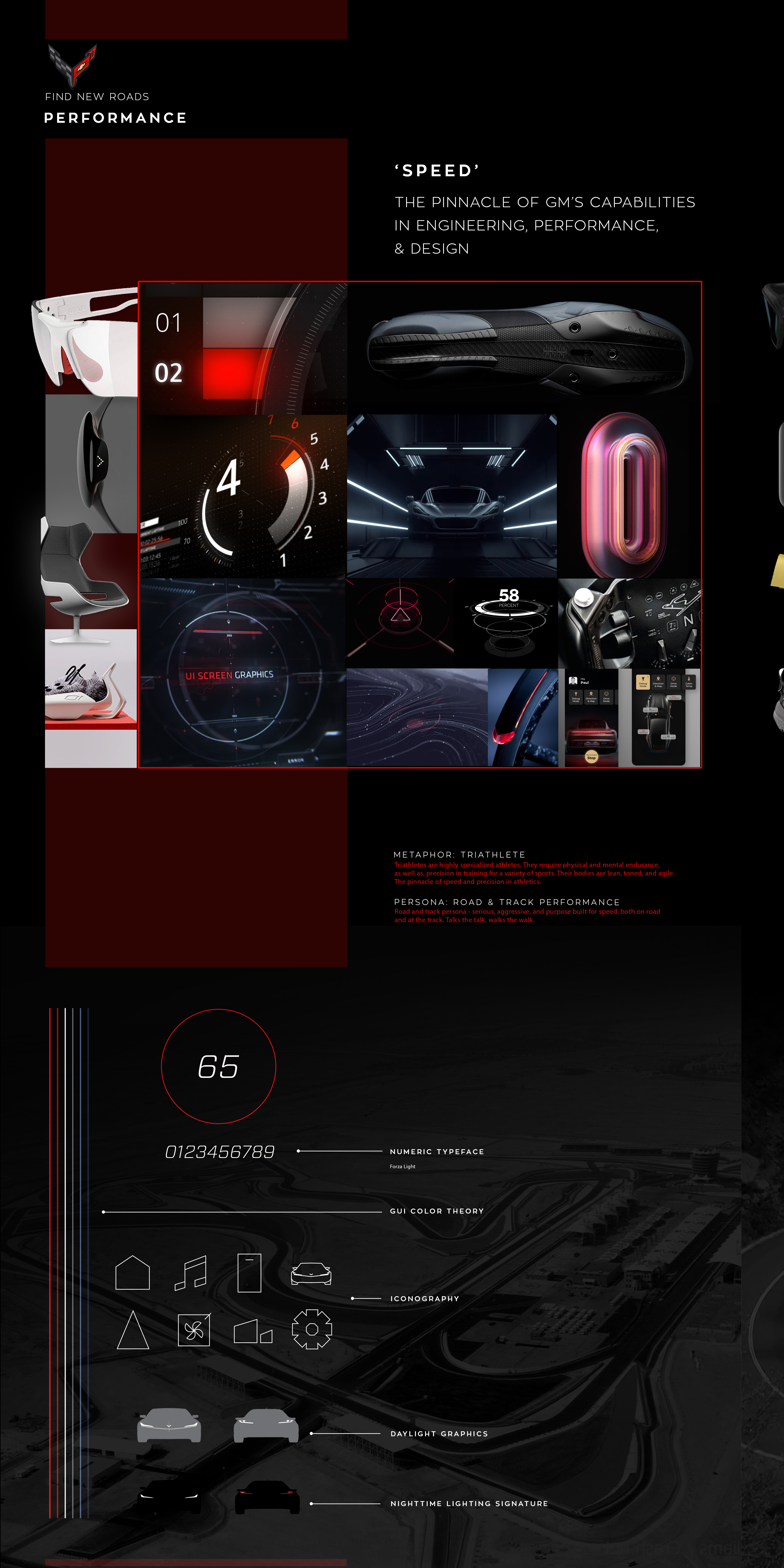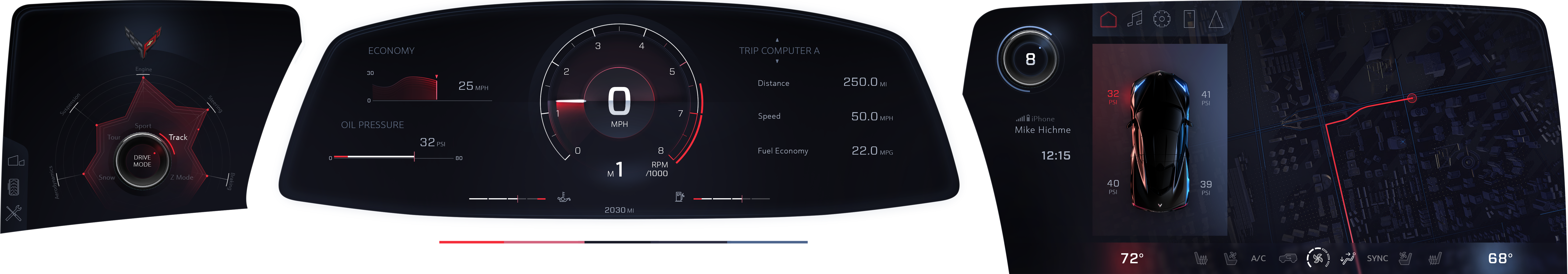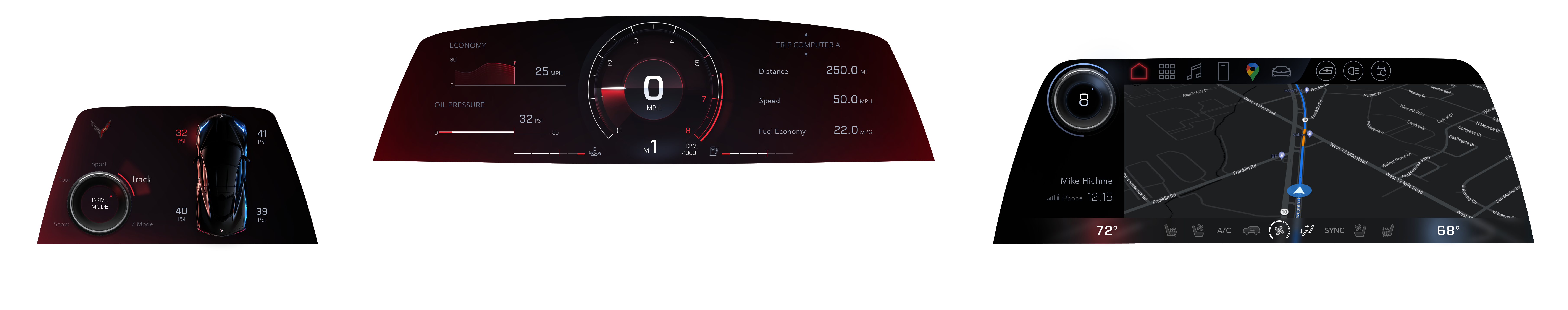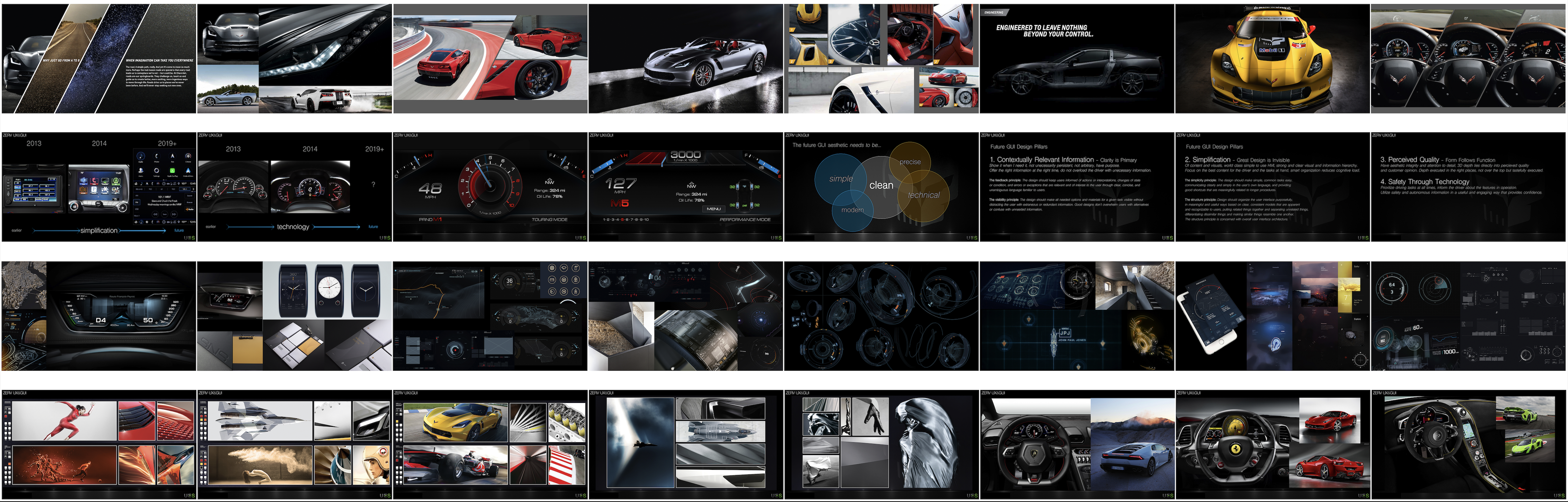 It started with looking at the existing C7 foundation, considering competition, looking at inspirational GUI, collaborating with color and trim and establishing design pillars.