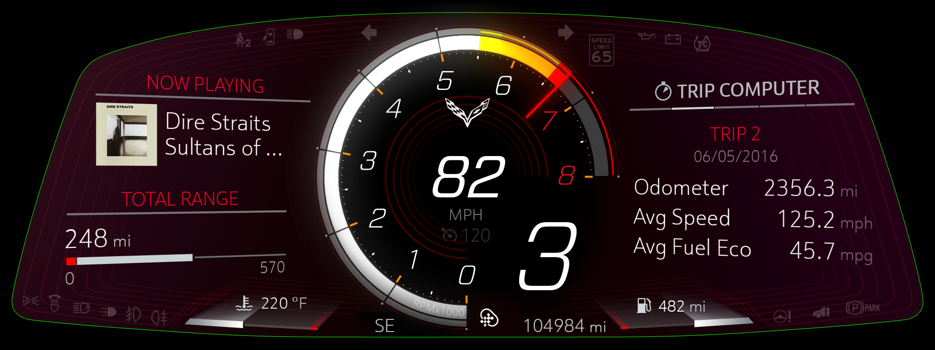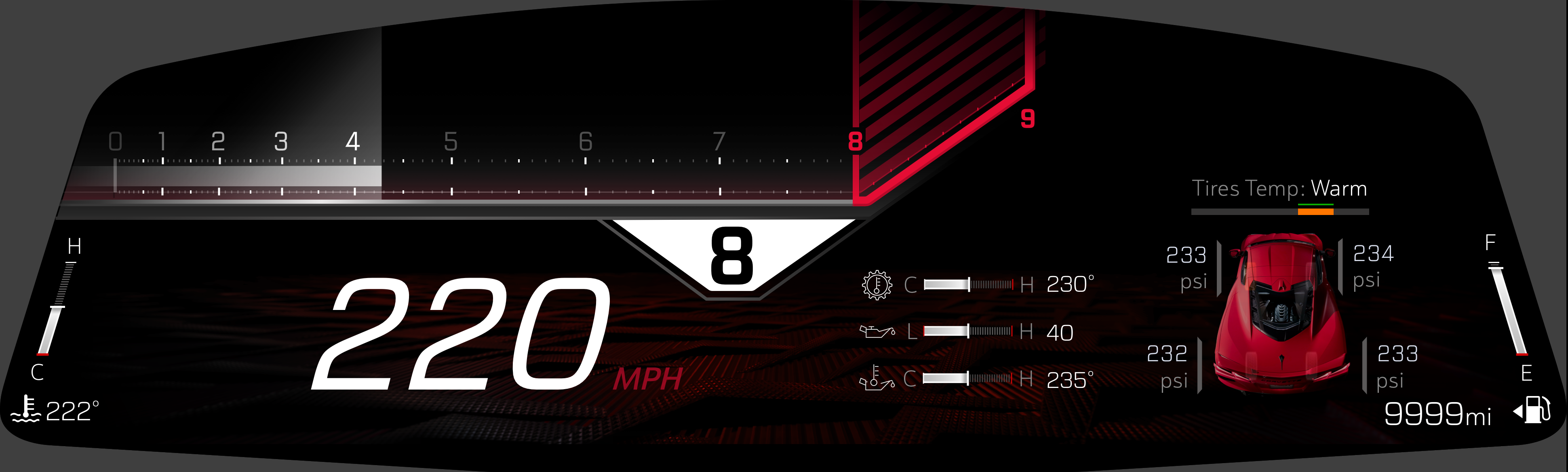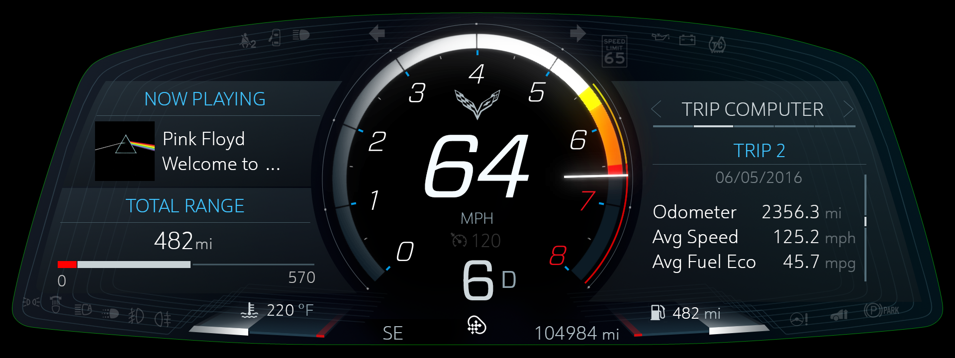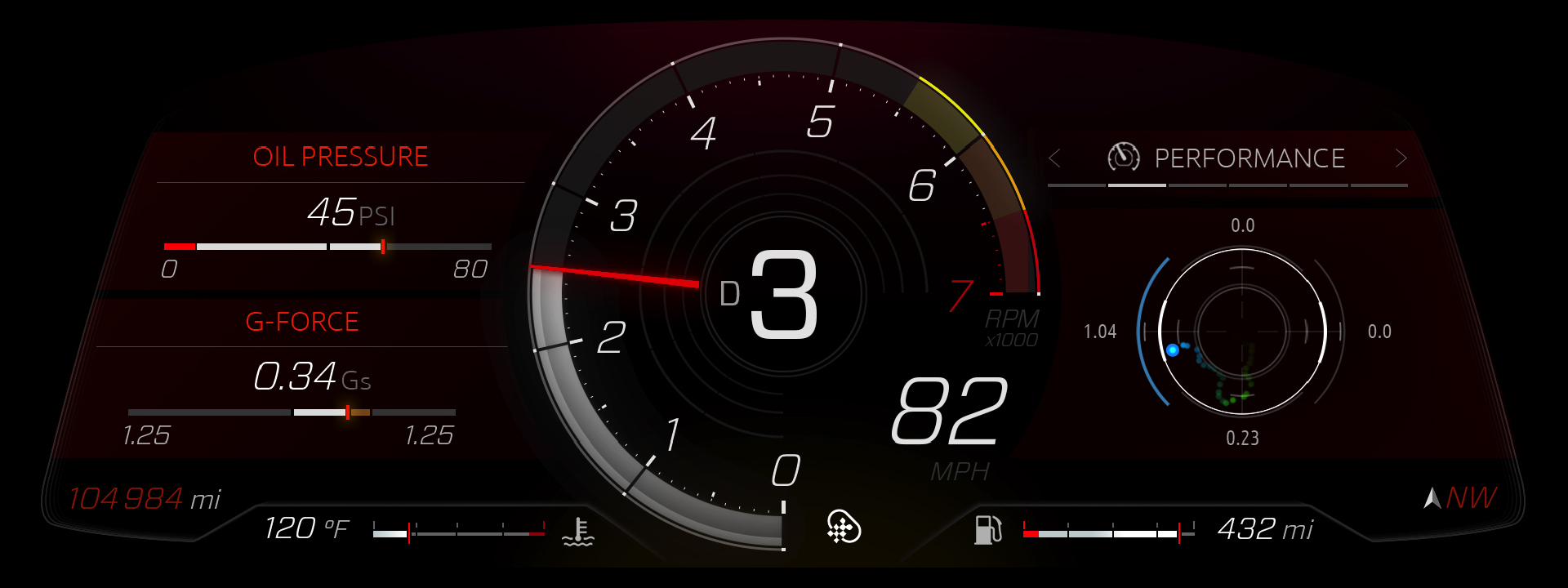 It started with looking at the existing C7 foundation, considering competition, looking at inspirational GUI, collaborating with color and trim and establishing design pillars.