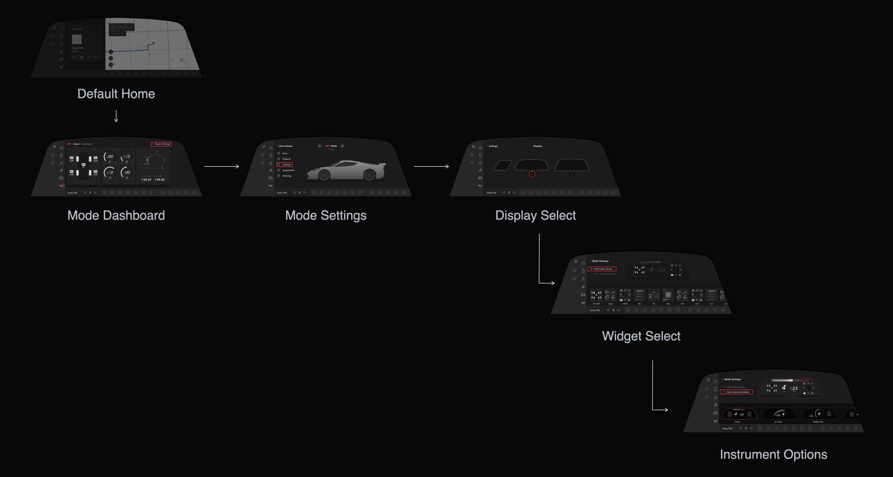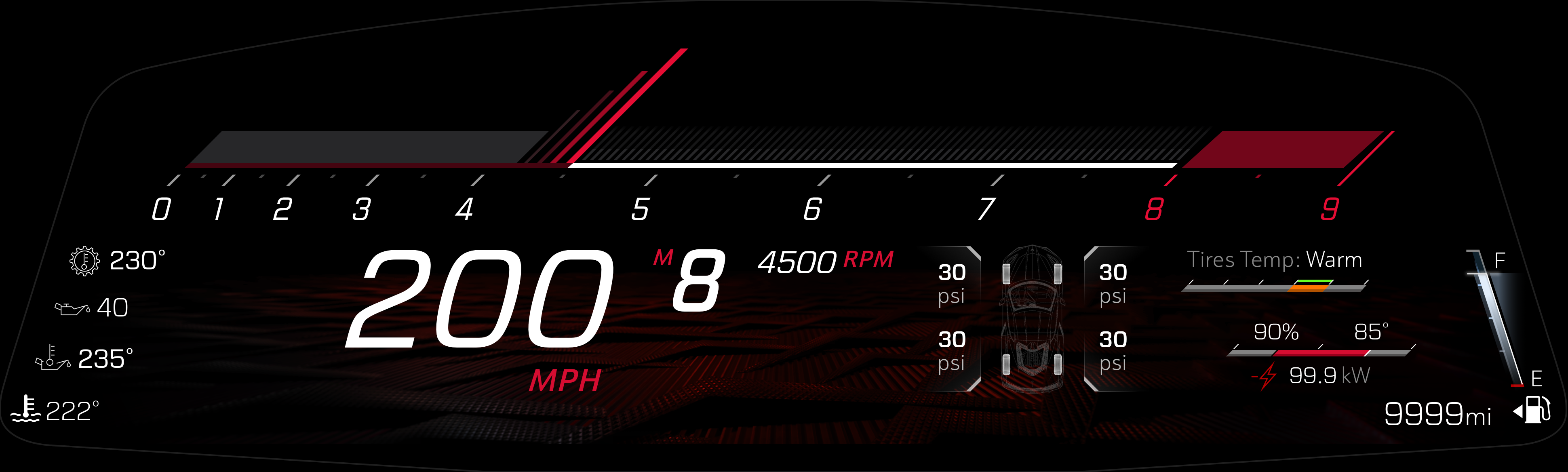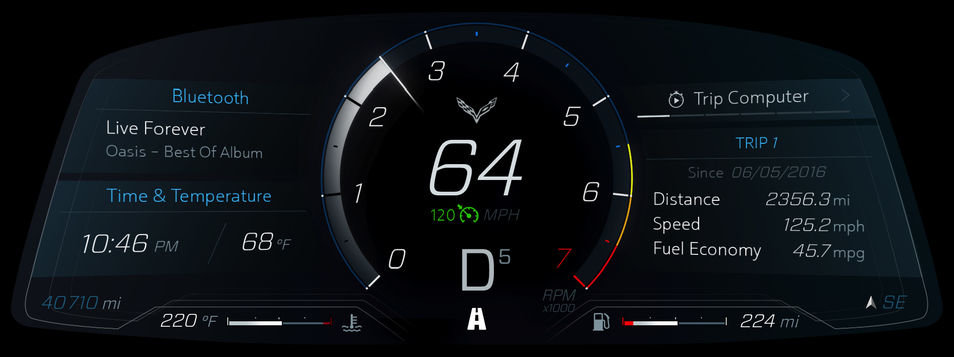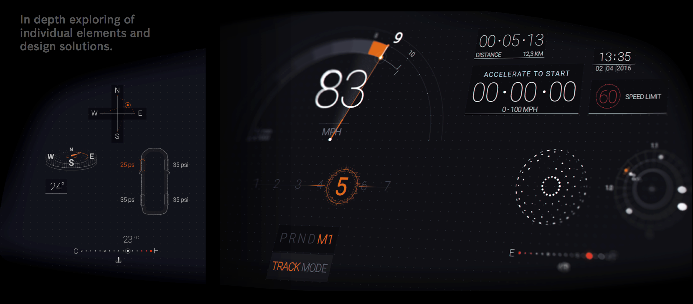 It started with looking at the existing C7 foundation, considering competition, looking at inspirational GUI, collaborating with color and trim and establishing design pillars.