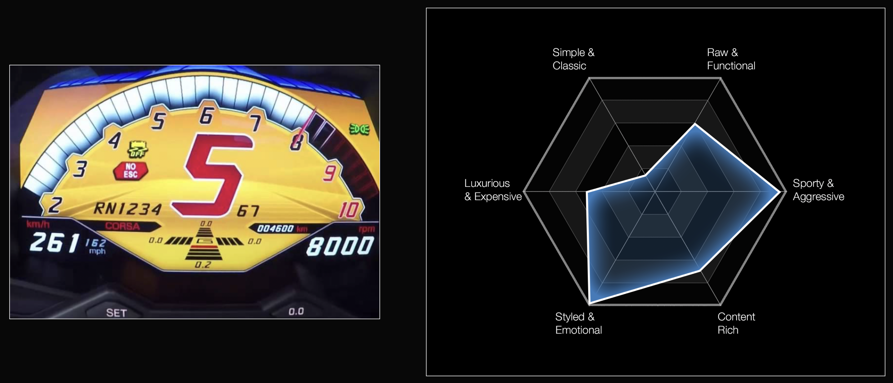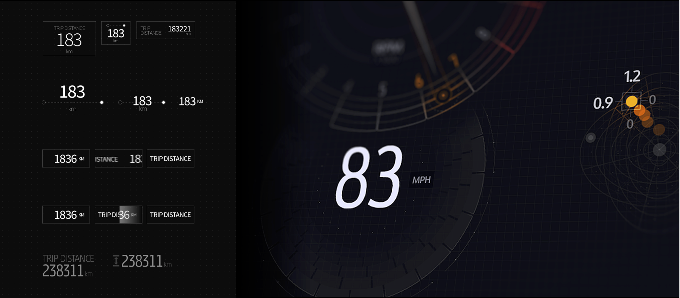 After looking at a bandwidth of graphic examples and establishing guideline parameters we targeted specific attributes for the new instrument cluster layout look and feel.