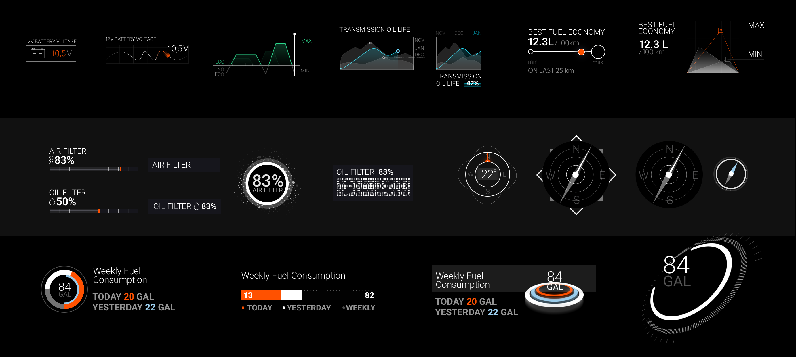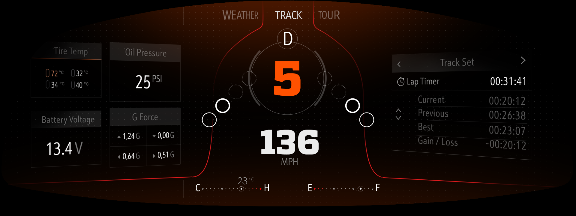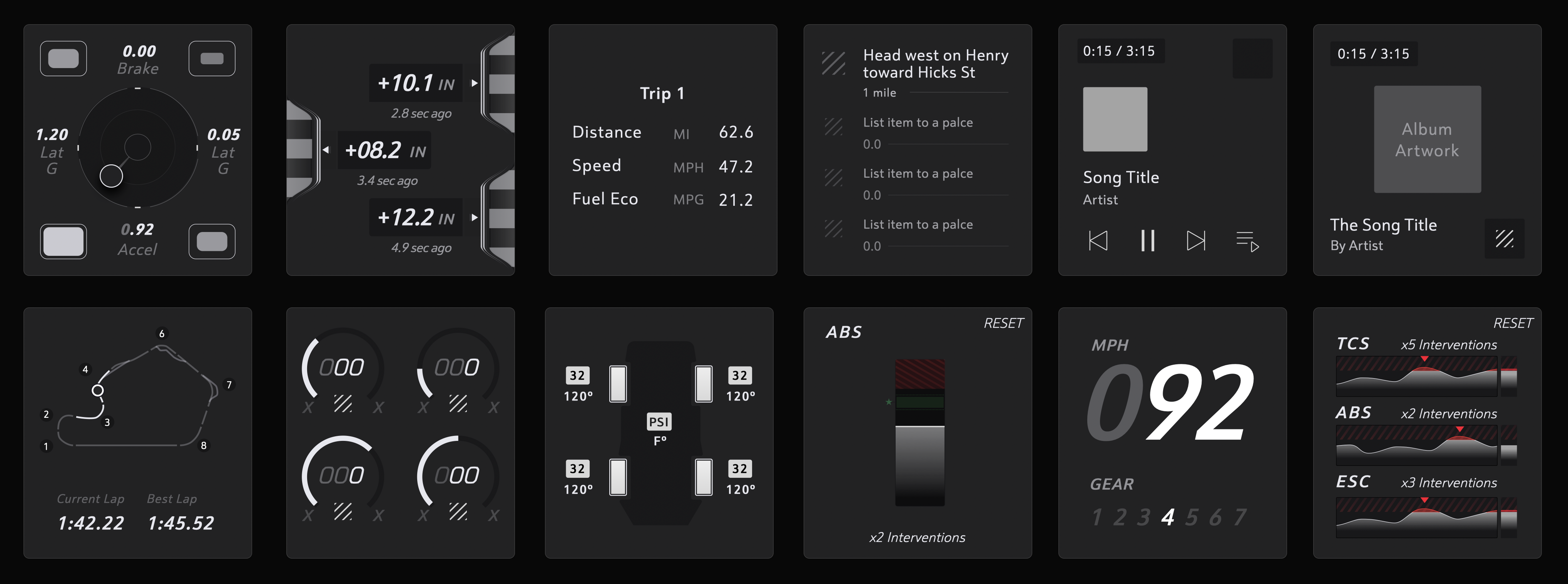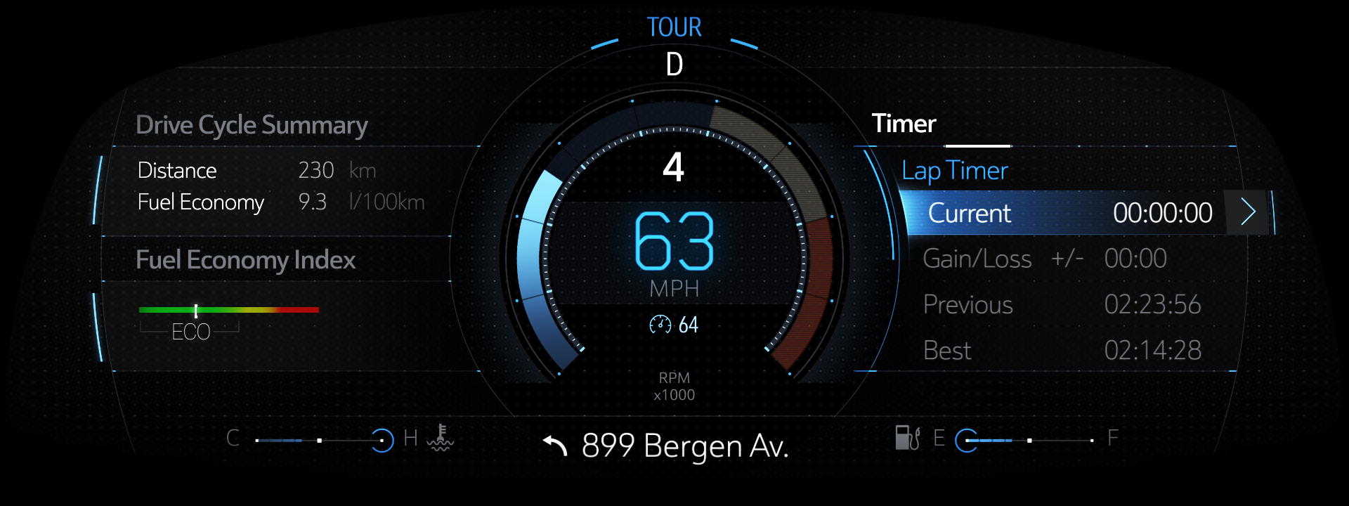 I ensured the graphics were properly implemented into the design system. I led, reviewed and critiqued the typography and iconography development. I ensured ISO standards were met, safety and regulatory best practices as well as GM best practices. I also reviewed and critiqued the 3D development of assets in the interface particularly vehicle imagery and realtime assets. I also worked with software on almost a daily basis ensuring gaps were closed, issues were resolved and that our teams were working as closely as possible.