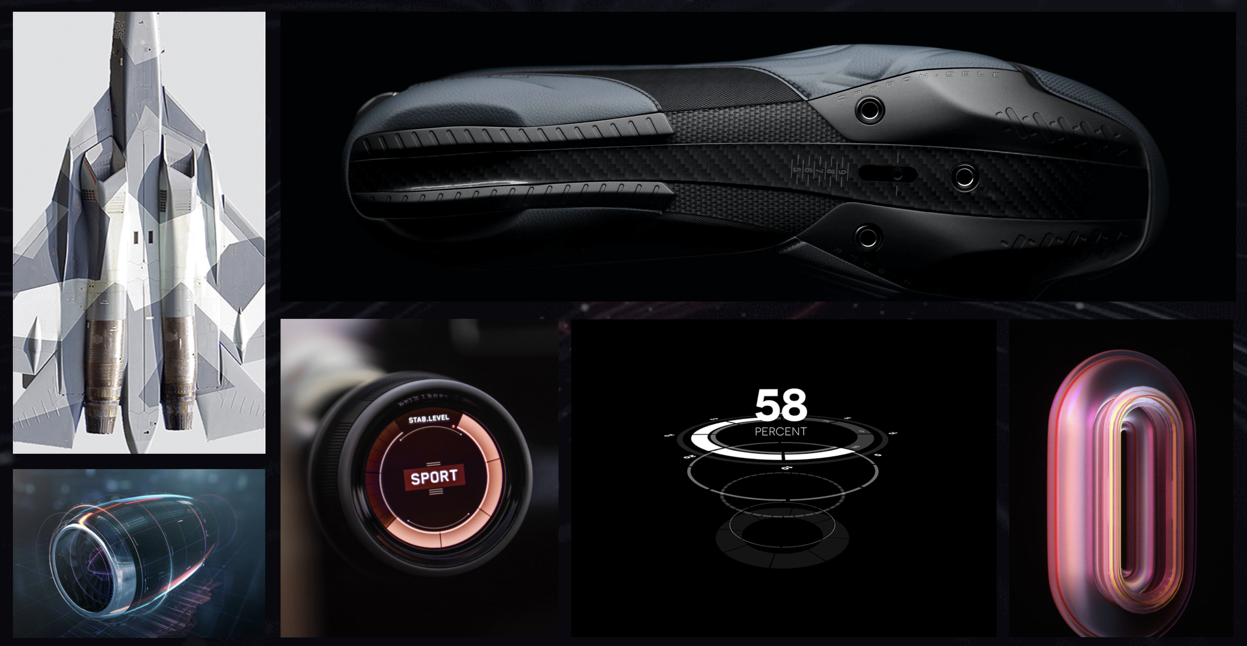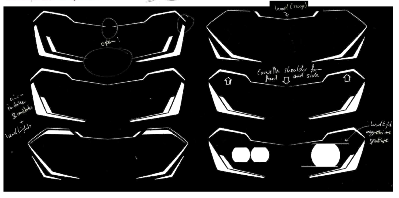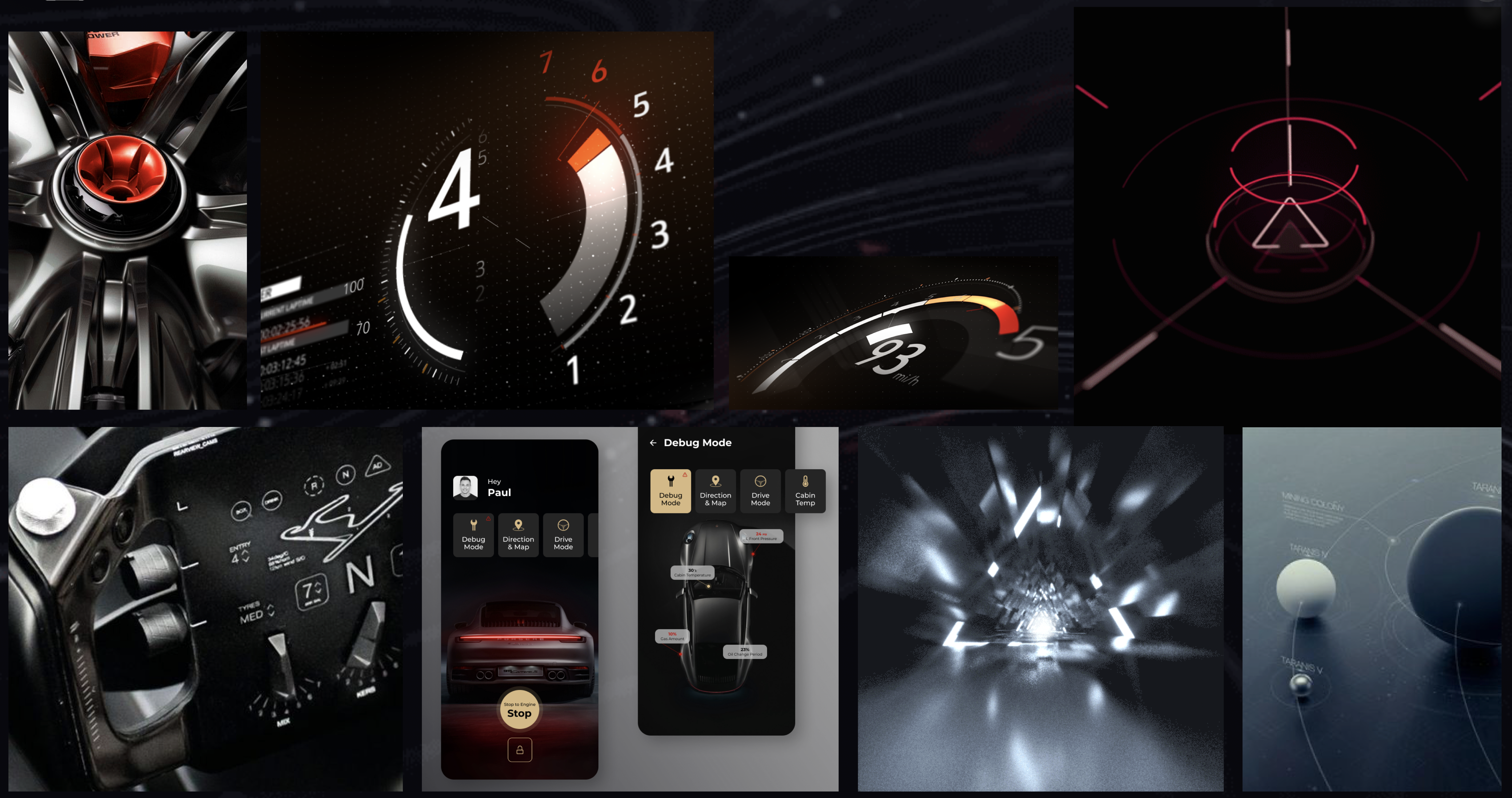 Welcome animation inspiration, sketching, vehicle look and feel, camera focal lengths and ideation board.