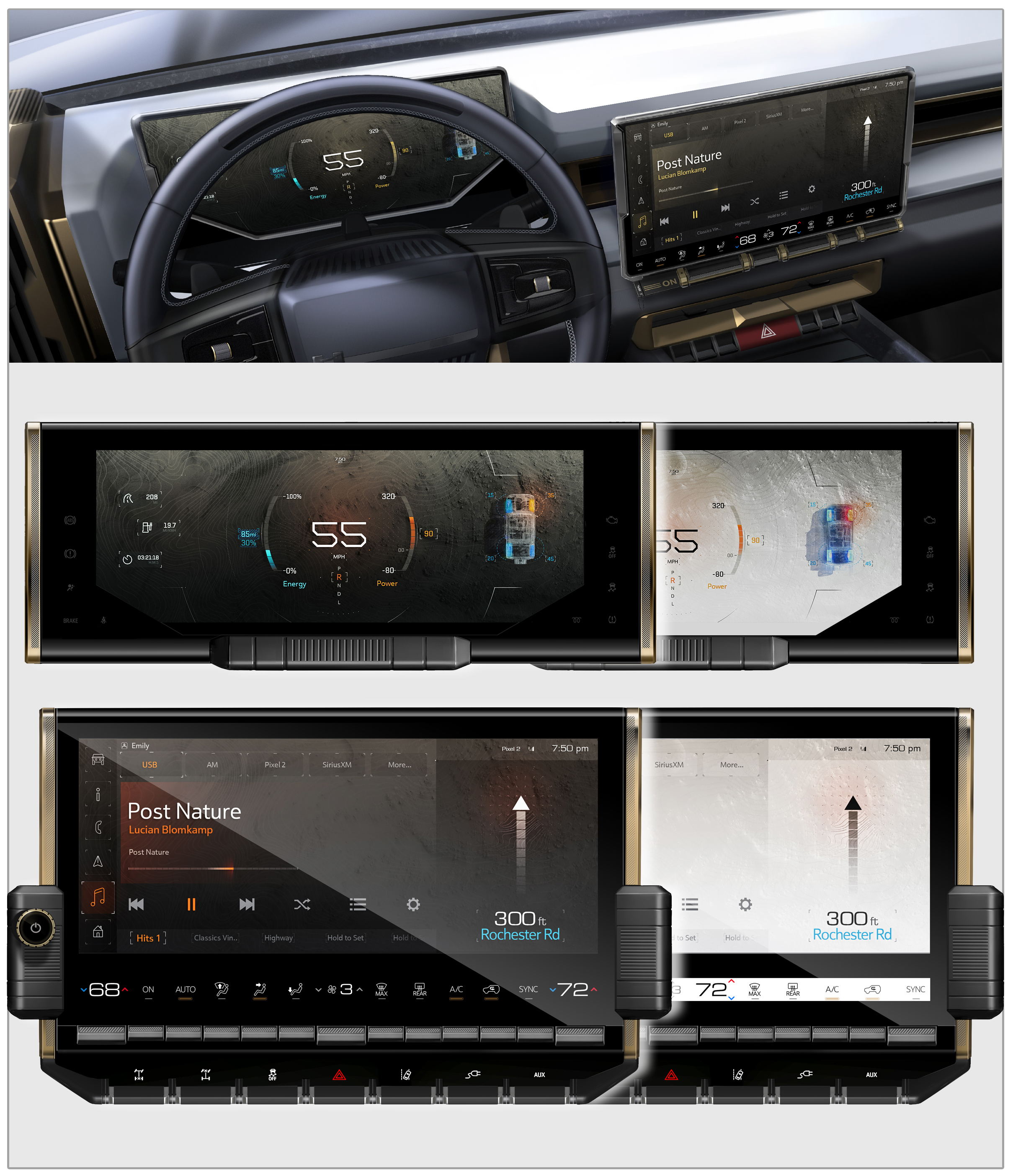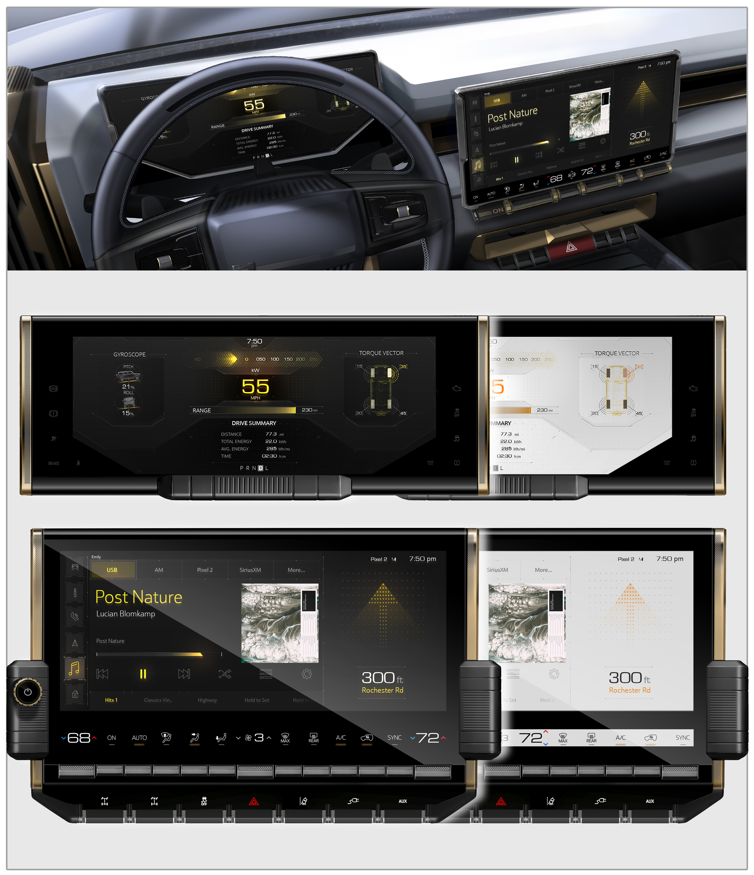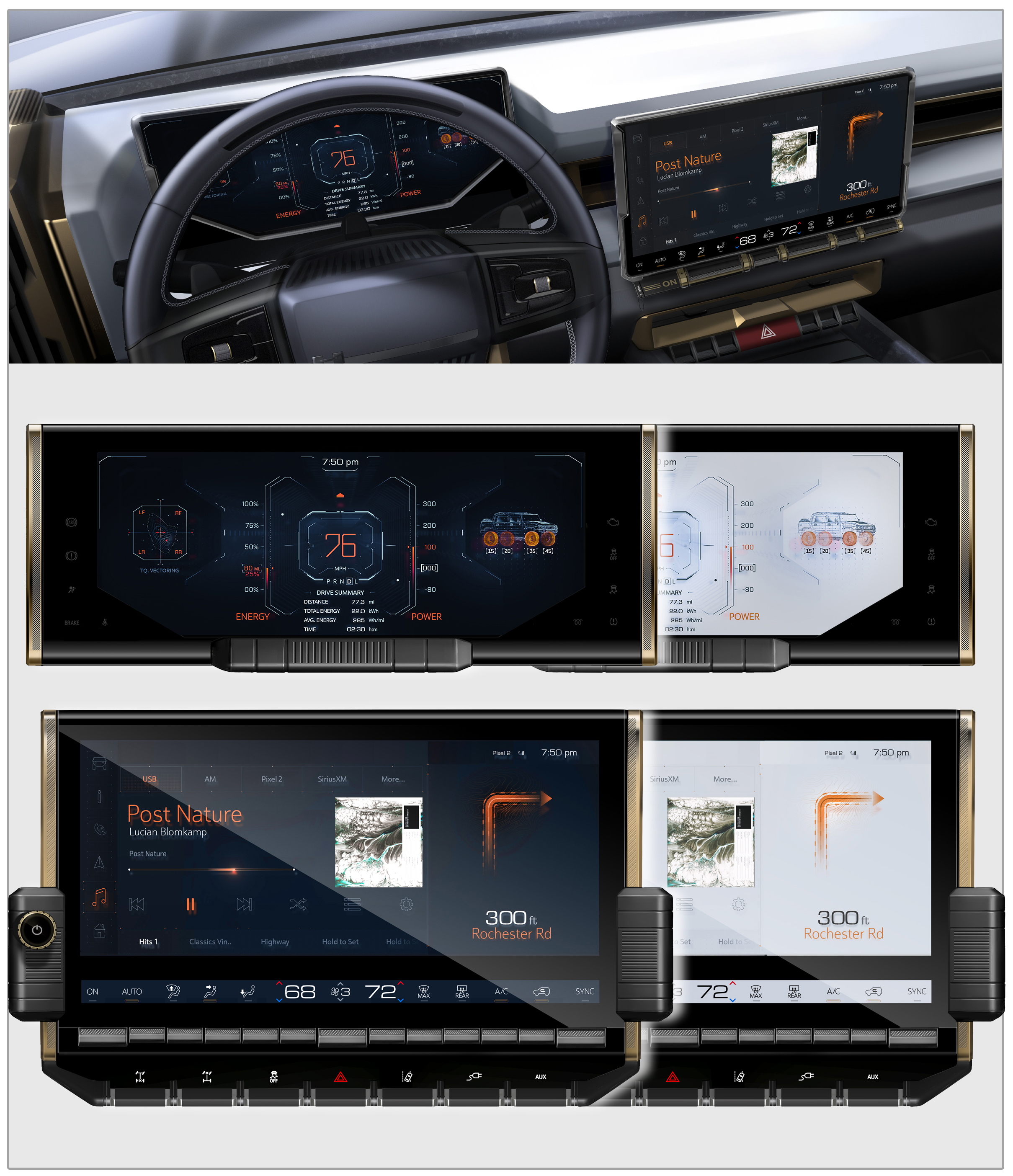 The highlight of this project for me was the unprecedented collaboration with cross-disciplinary design teams and laser focus on the identity and vision we achieved as a team. Working with VFX studio Perception, led by John LePore, GM Design led by Rich Scheer and the GM In-Vehicle UX Team.