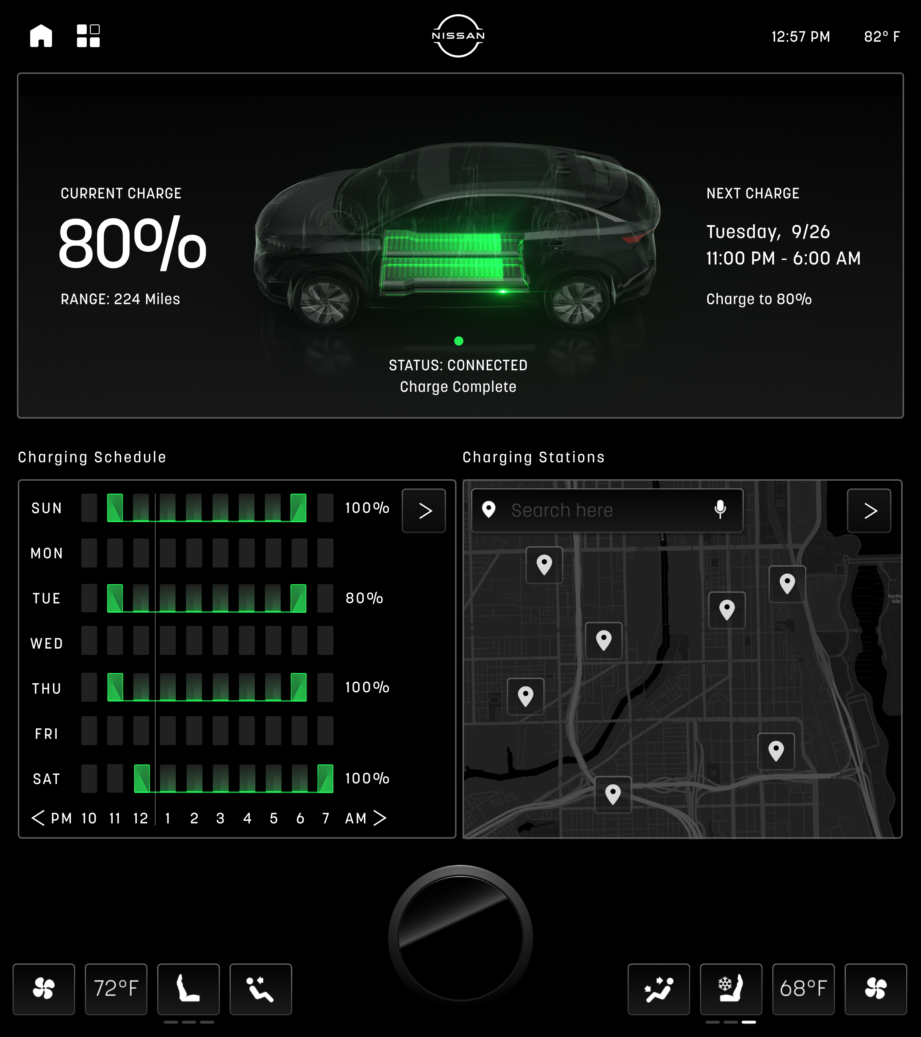 Provided HMI review of the Nissan Ariya, consult on industry best practices, compare design tools. Champion design system and component based design work with prototyping capability. Built out a dynamic pipeline that considers an omni-channel digital focus. Provide insights on gap to market and design recommendations for a vision of their potential next generation portfolio utilizing this pipeline.