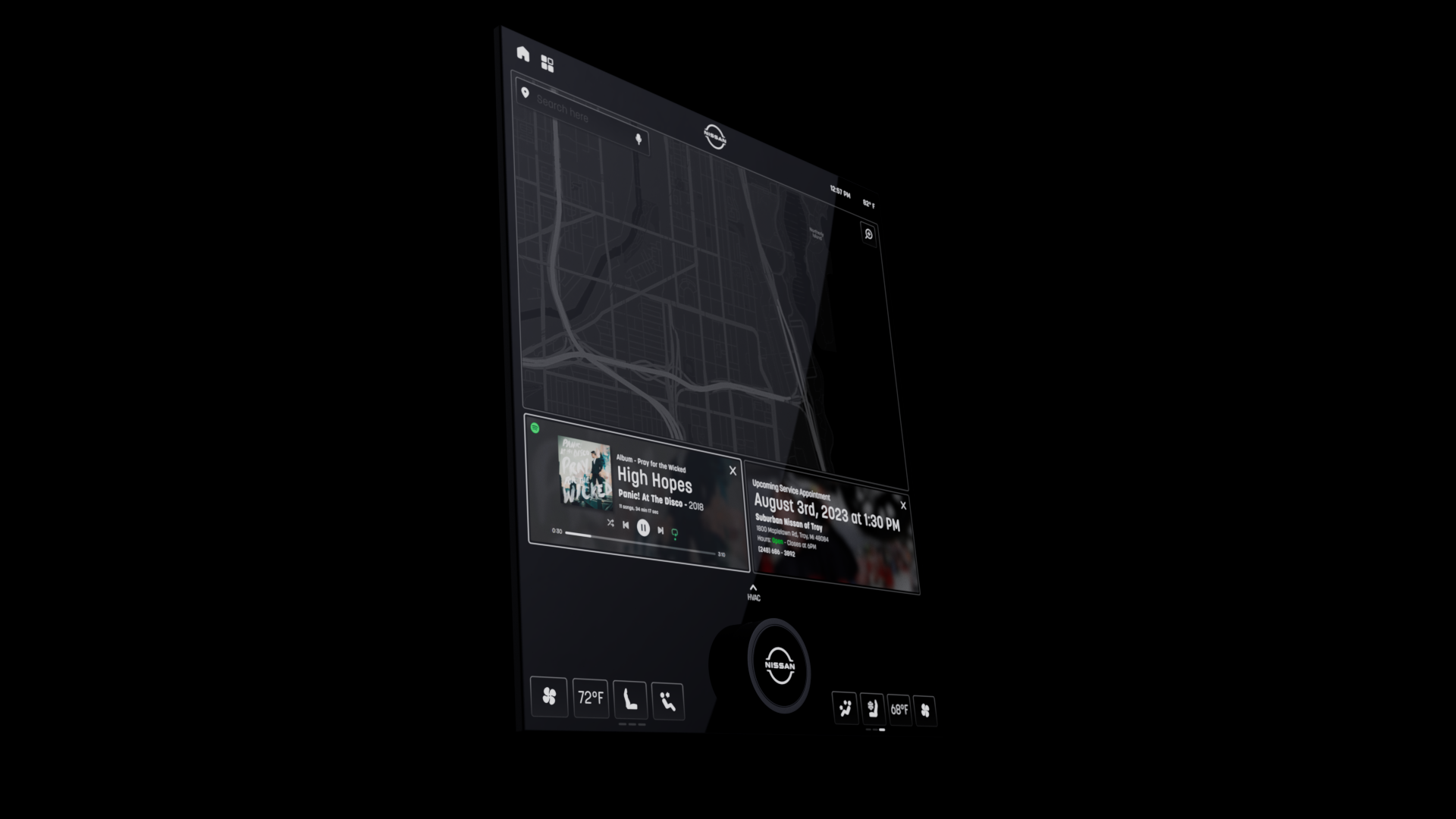 Nissan sought expertise to revolutionize their In-Vehicle HMI Design creation process. The mission involved updating their design process with modern 2D and 3D tools, adopting a comprehensive pipeline strategy, and implementing a state-of-the-art design library framework to drive efficiency and effectiveness. It capped off with a vision concept of their future product.