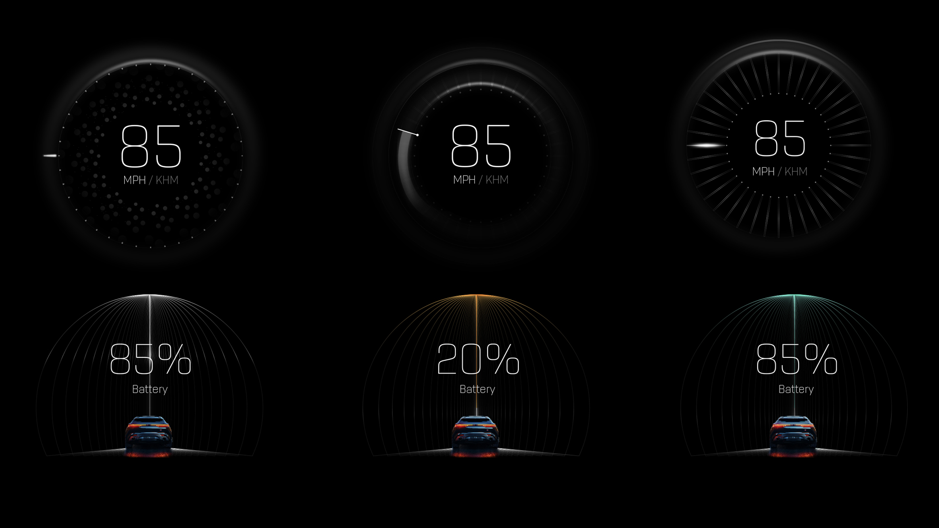 2x primary instrument cluster layouts available in addition to a calm focus mode and the peek in charging screen.