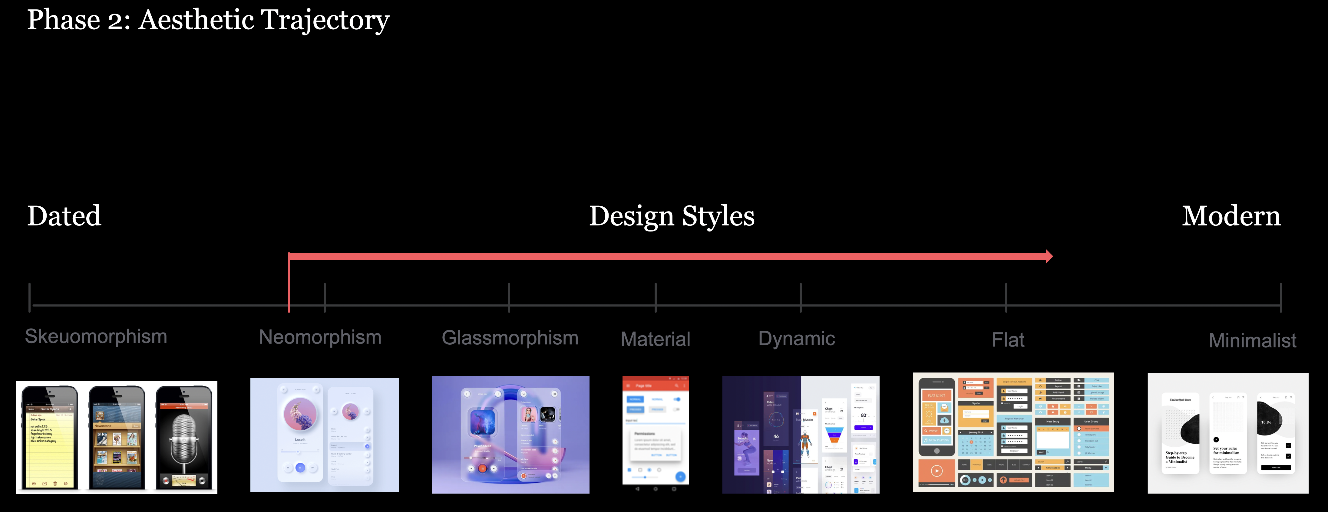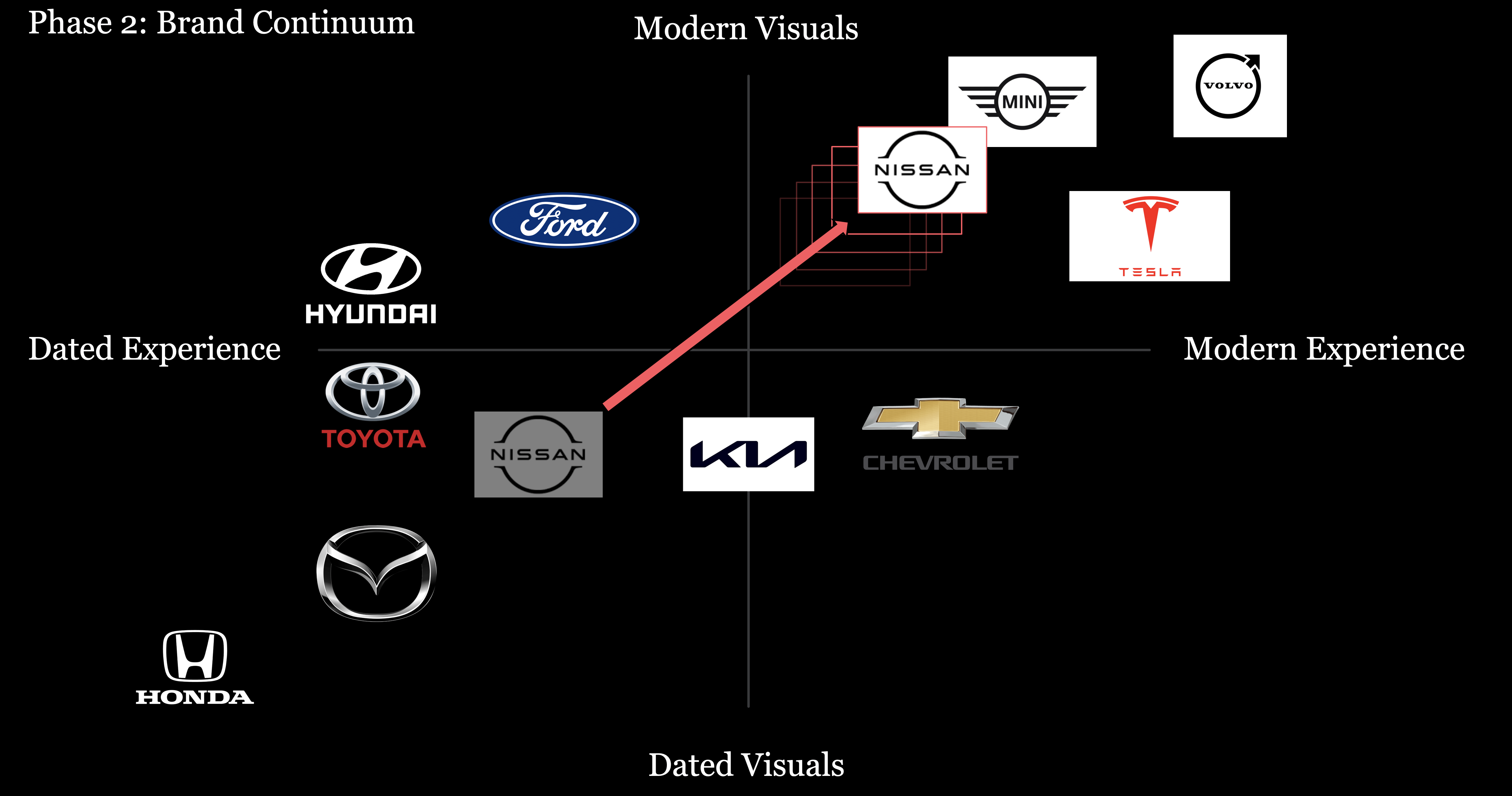 This encapsulates some of our process identifying where we wanted the brand to move as a result of this new user experience, how the style needed to shift, as well as a parallel company to target, whenever we were in doubt where Nissan should go with this design we could lean on that brand parallel as an aspirational and relevant target to strive towards.