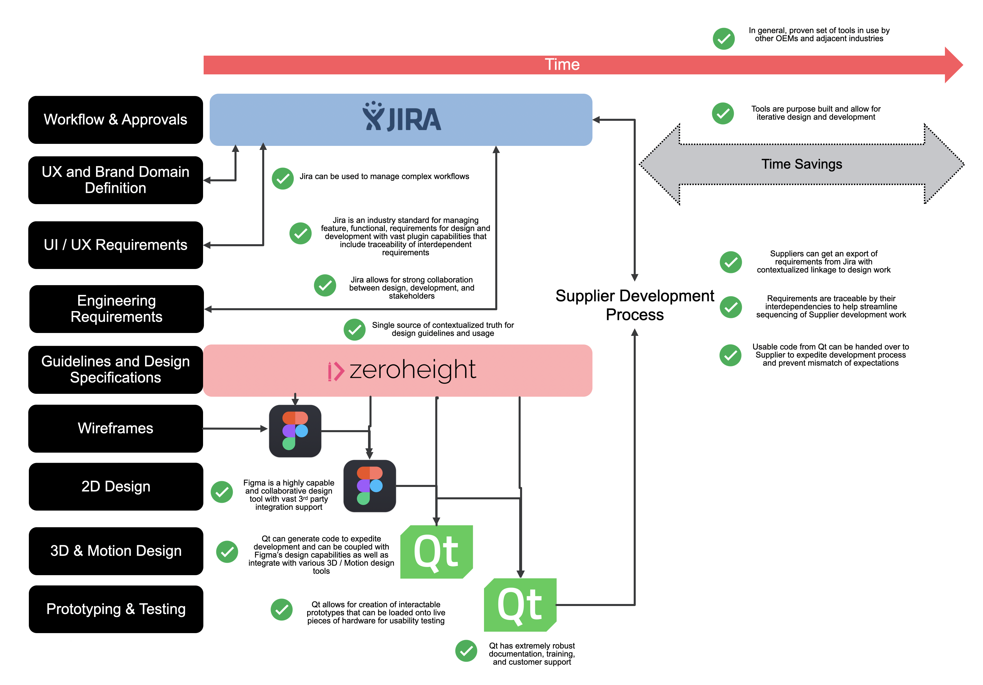 Here we see fully interactive prototypes, with software ready code, feature functionality, modality and even realtime 3D incorporated into the deliverables, including Figma files and QT ready environment files.