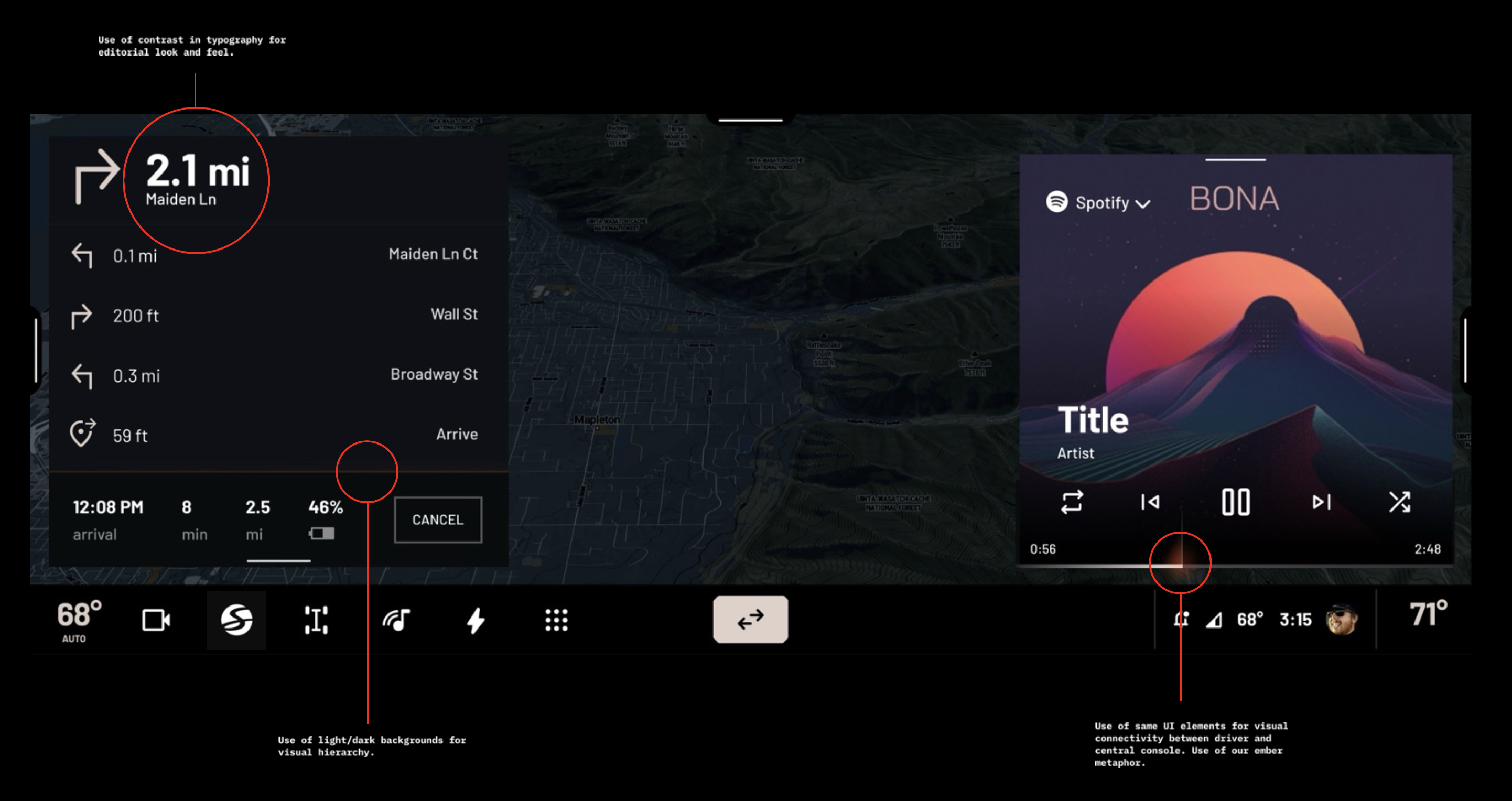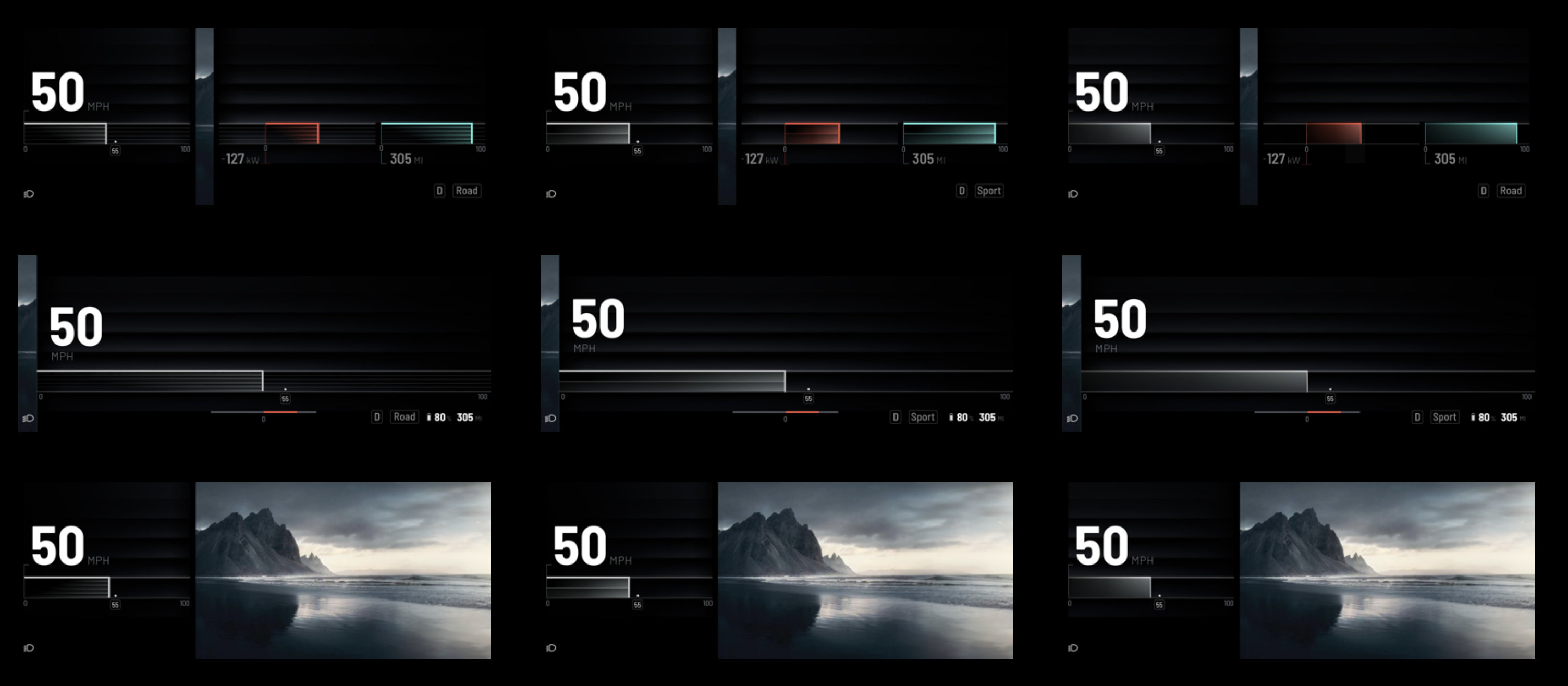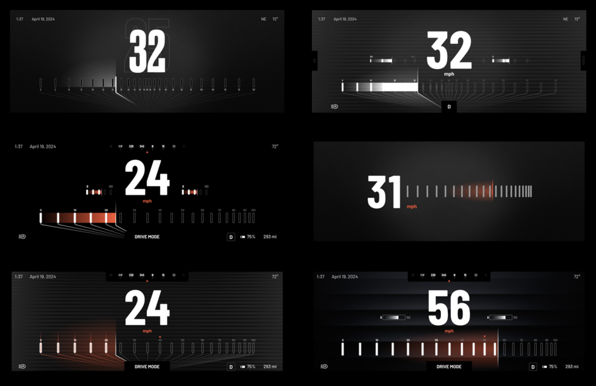 When used properly, they can show the driver things elevated at a glance. These embers can heat up or cool down, living and breathing like a fire depending on the moment. Like when pressing hard on the accelerator, it can intensify, when you adjust the volume, show the status of an active song or showcase hierarchy status.