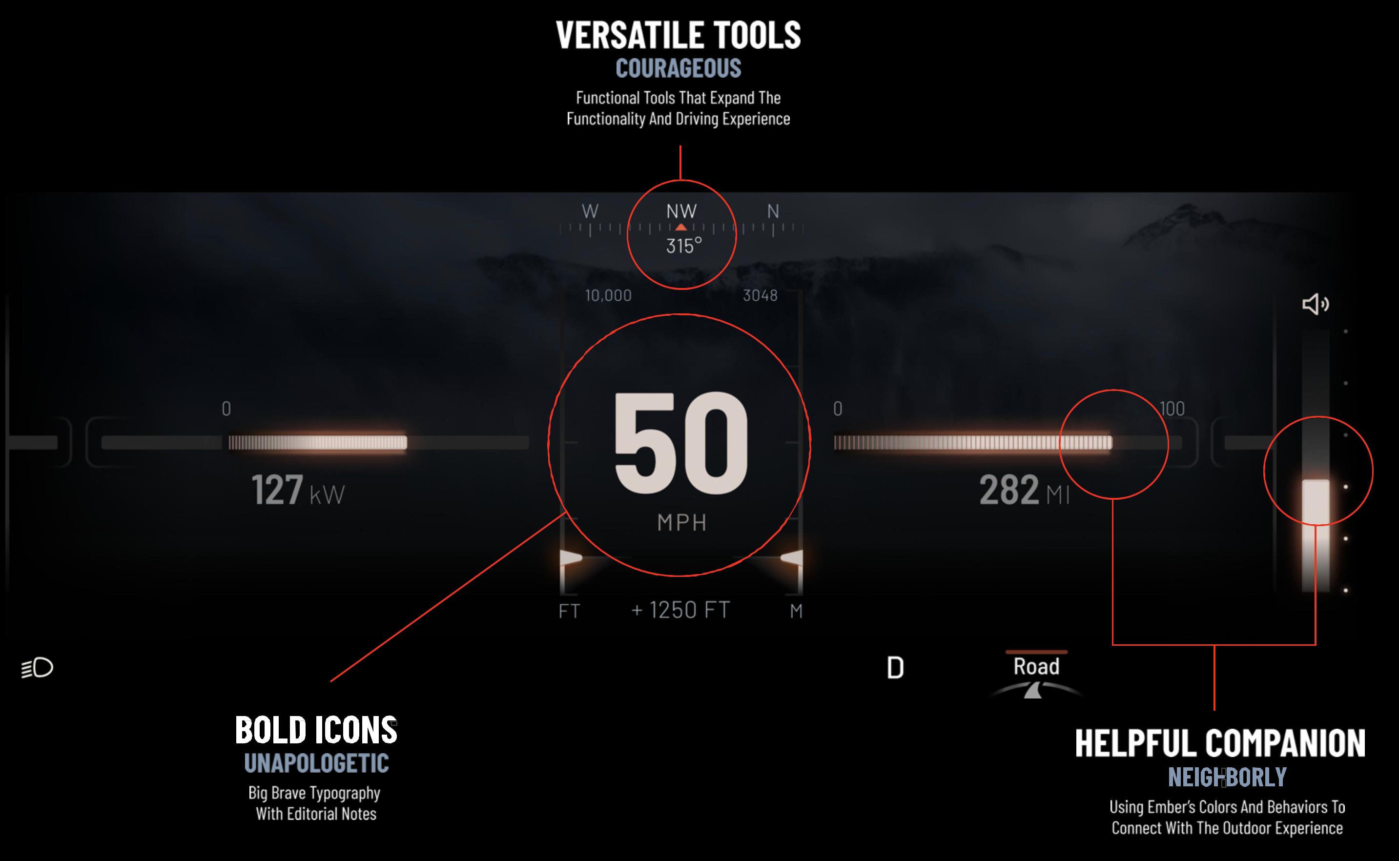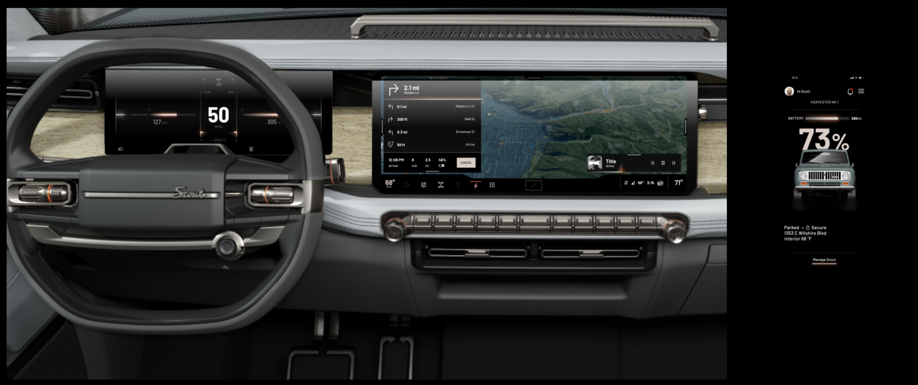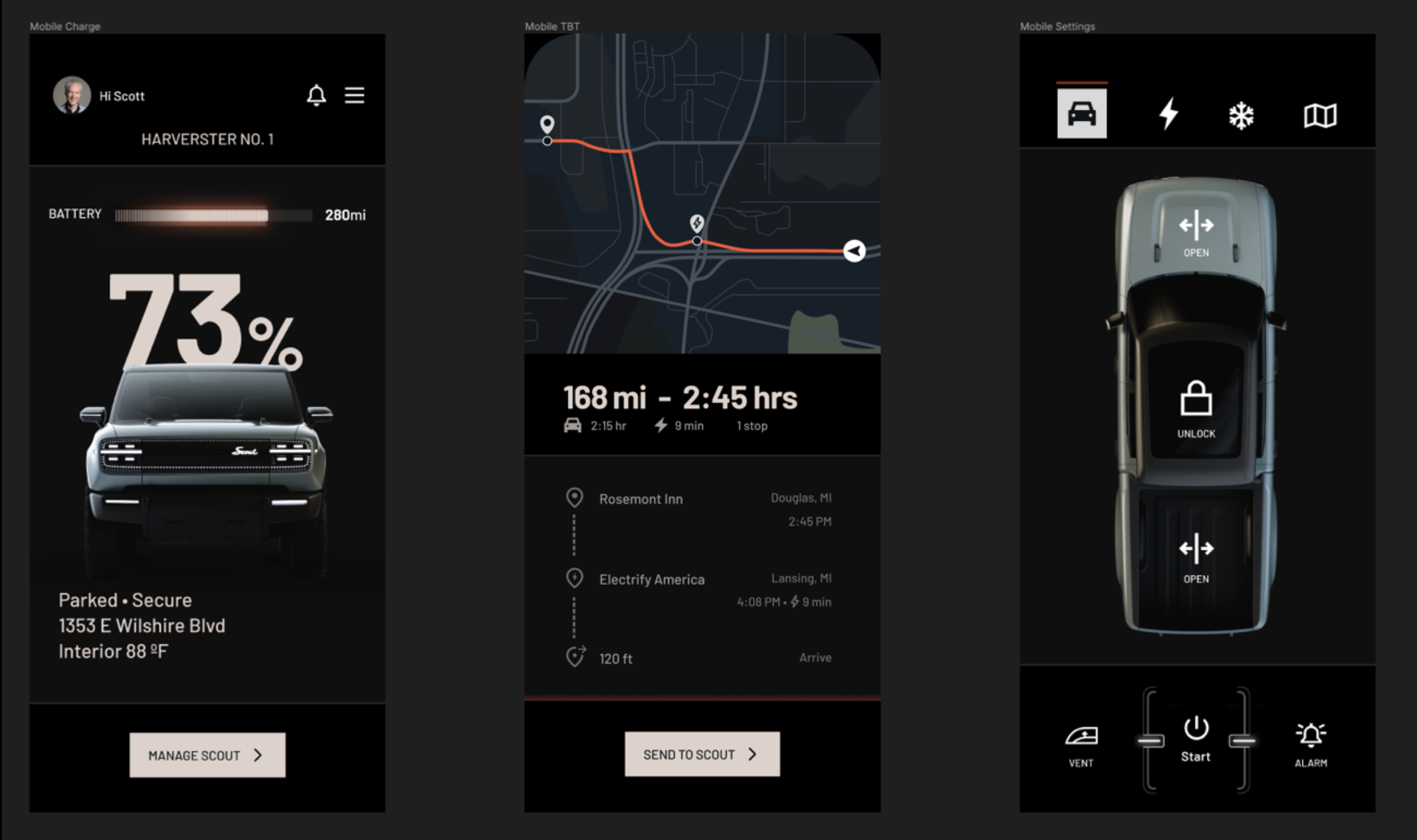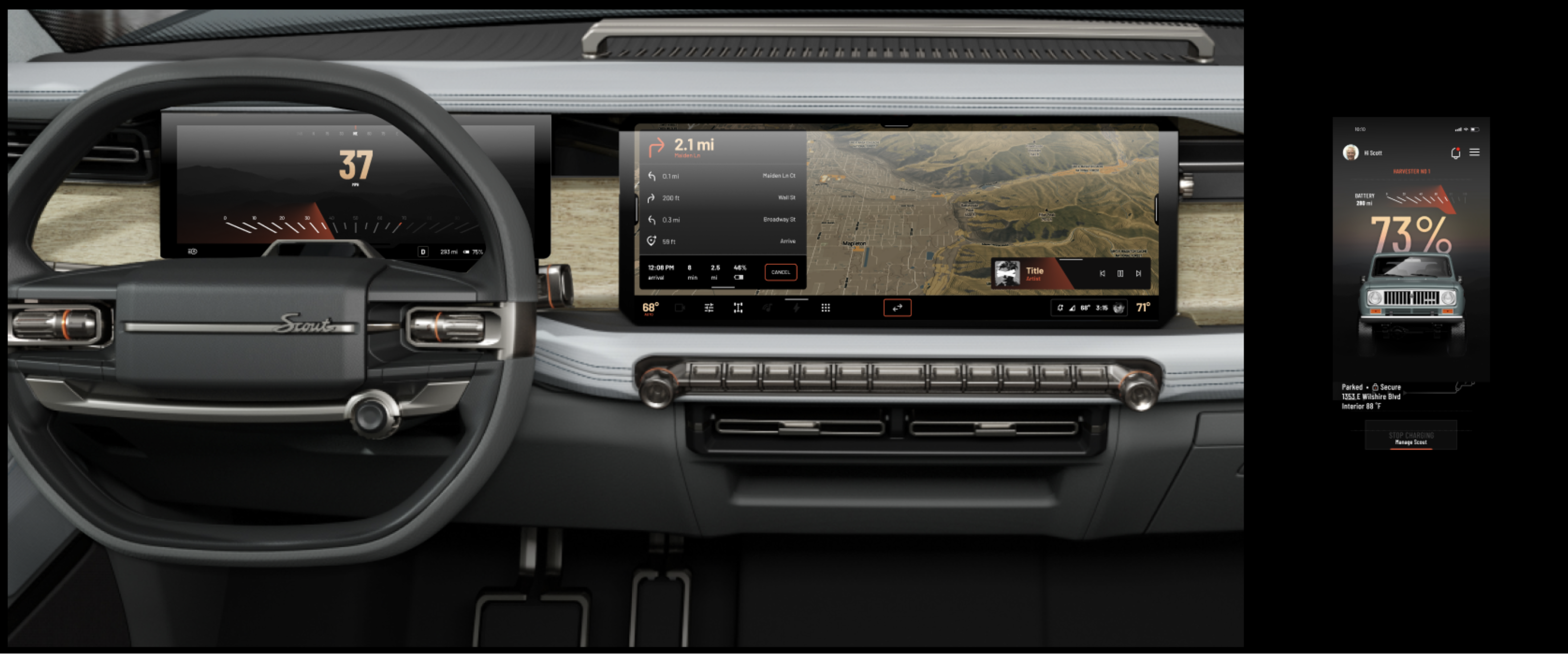 A theme that perfectly balances brand and vision. Designed a unique visual experience for the Terra and Harvester Scout Motors vehicles