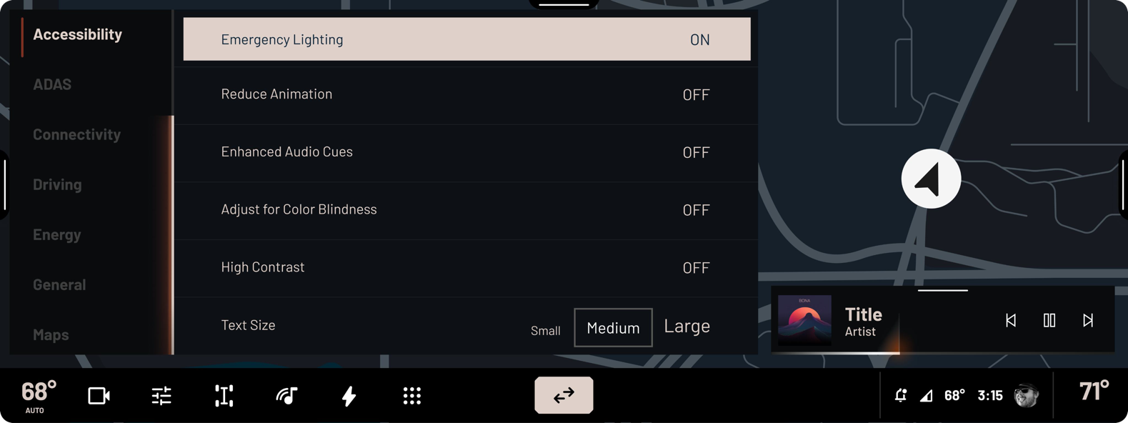 The touch screen elements are layered with the map always present and located on the bottom most layer of the UI.