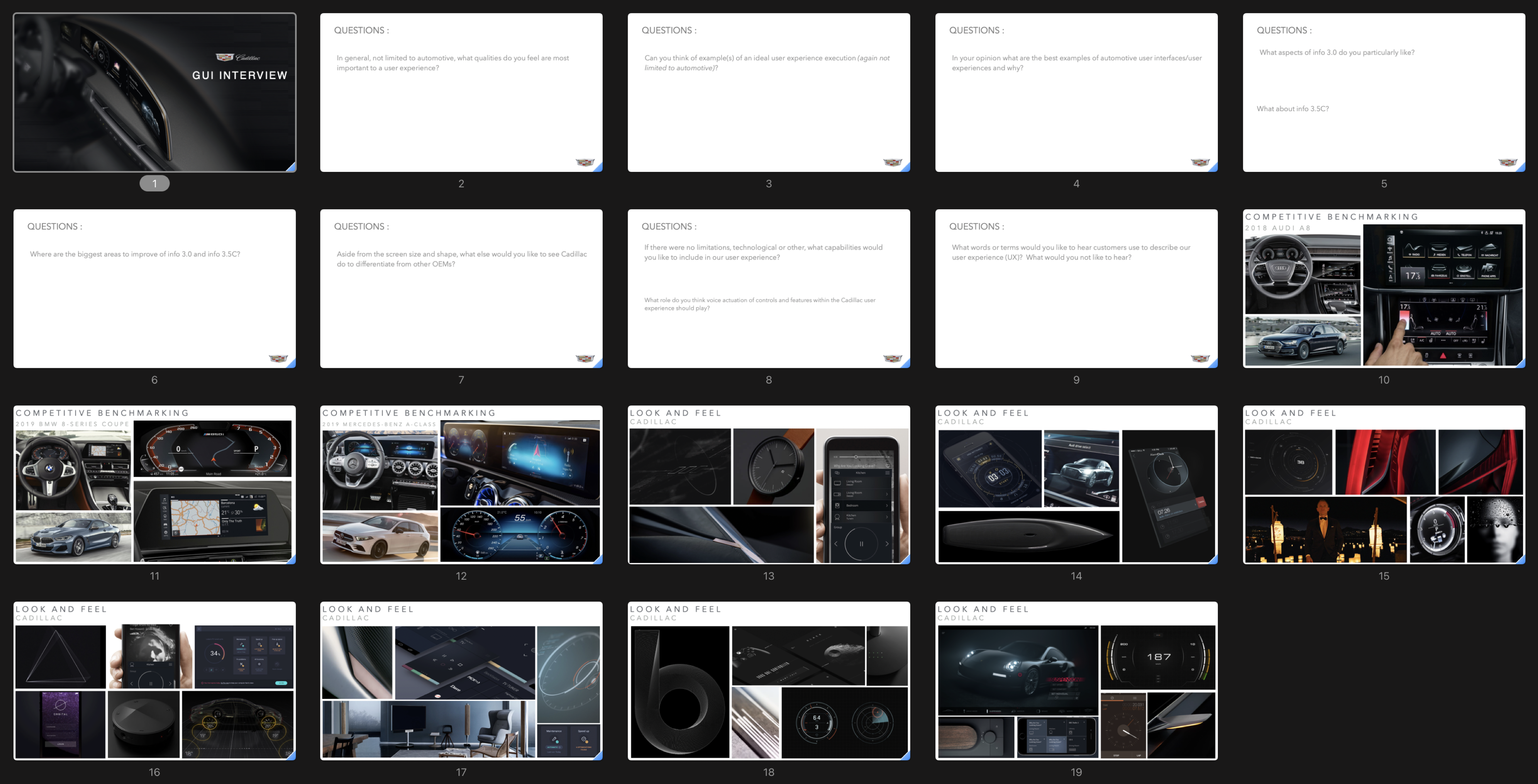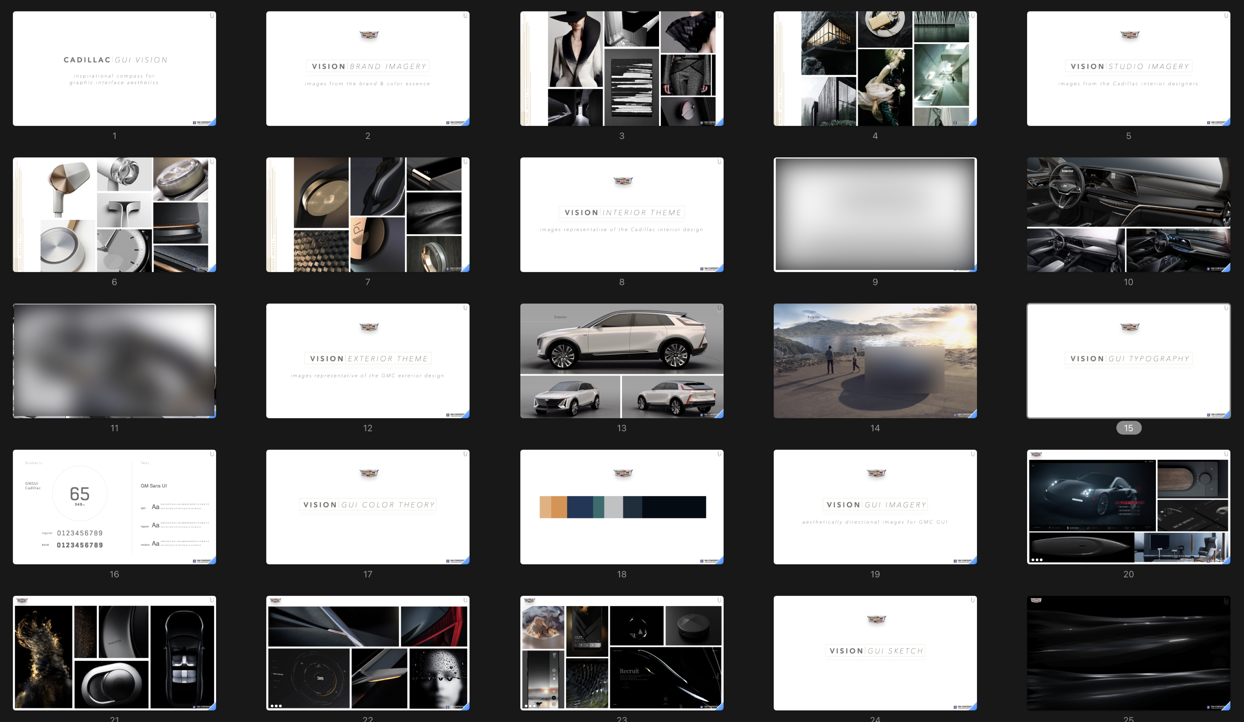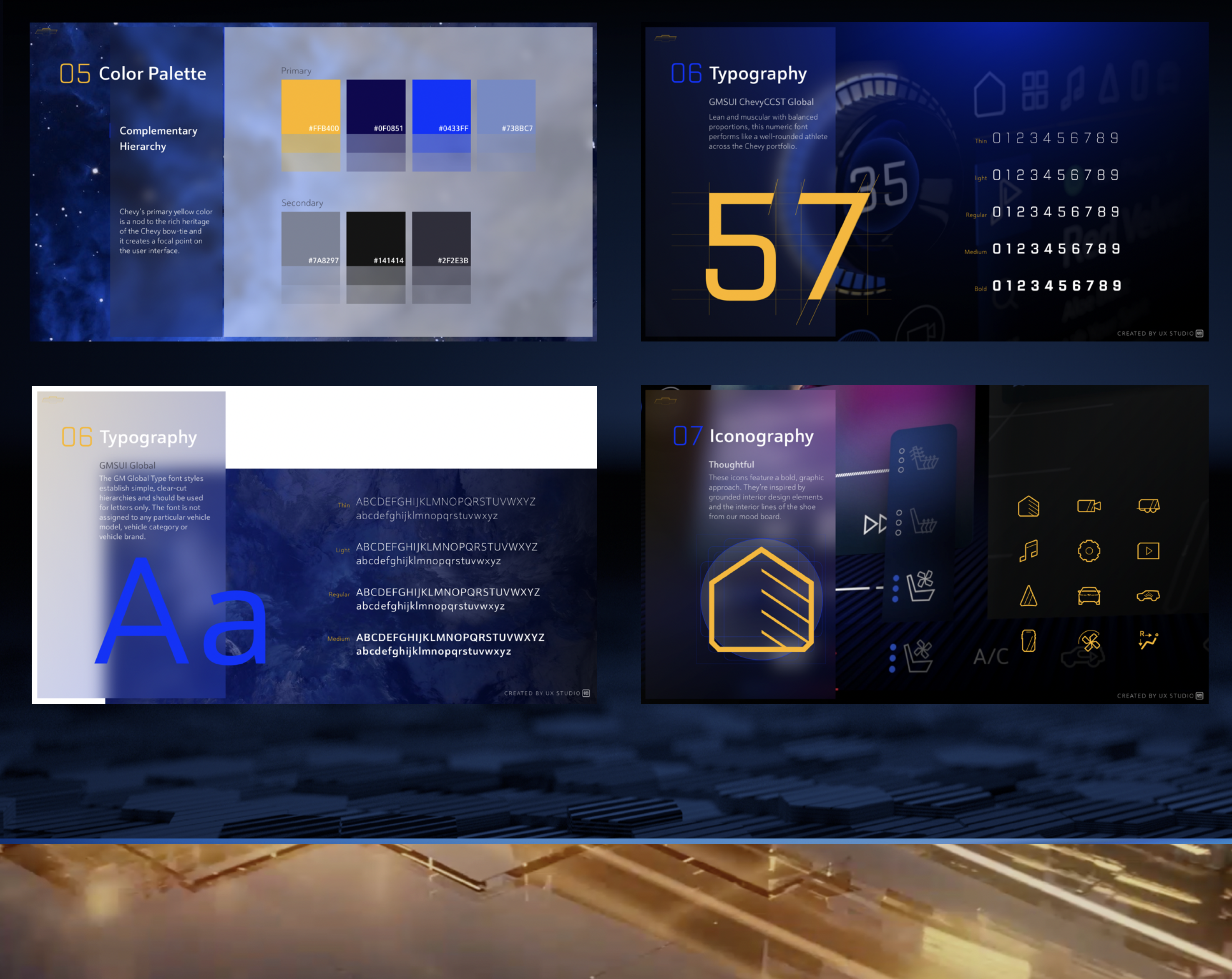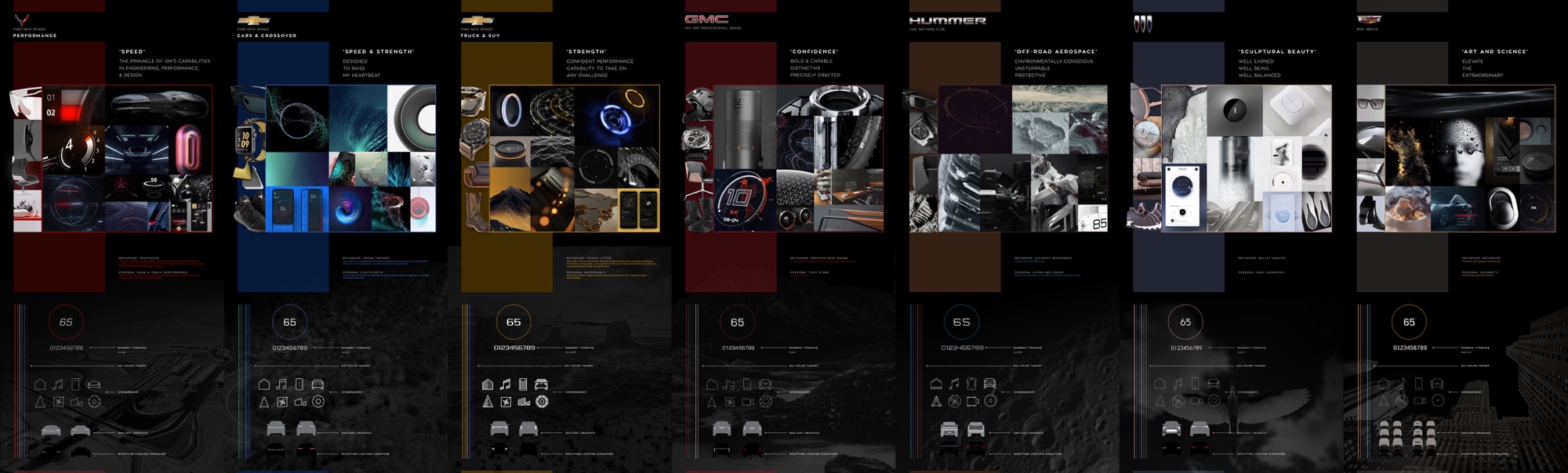 These robust vision guide templates combined the same inspiration as reference to our UX team that the color and trim teams were using, that the component team was using, that the interior teams were using, even references to the displays and exterior theming – helping give our team incredible insight and alignment to be starting from the same point of view.